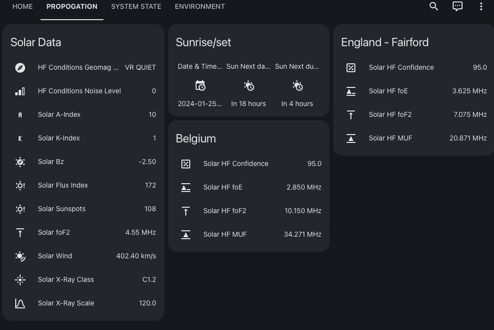 In extremis, Home Assistant will shut down the radio if things are getting too hot. It will alert me using Pushover if it’s getting too cold, so that I can (e.g.) switch on the Power Supply and (maybe) the Flex to warm things up.